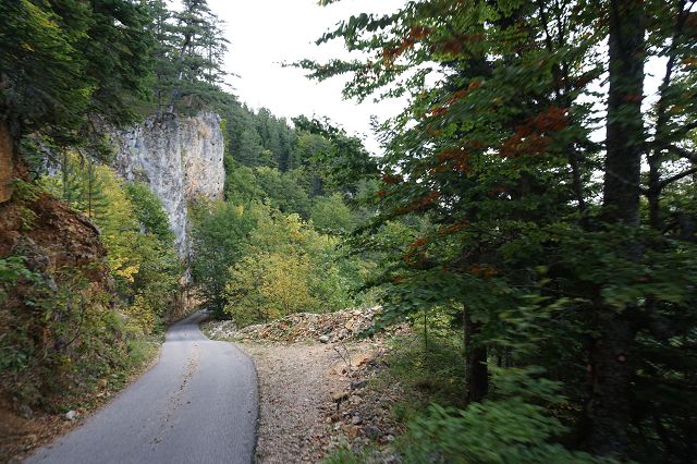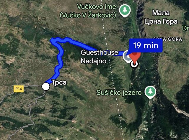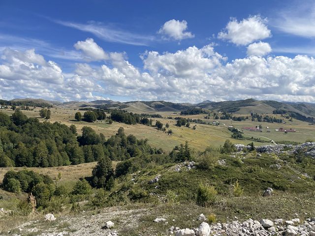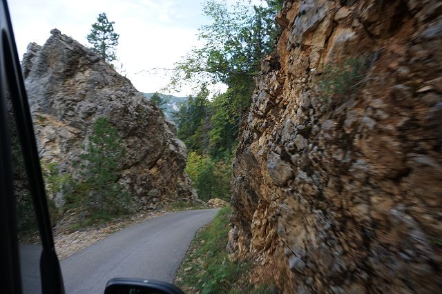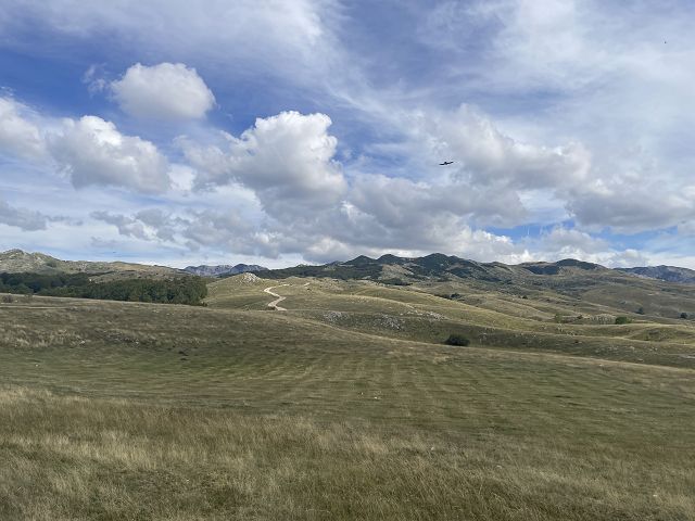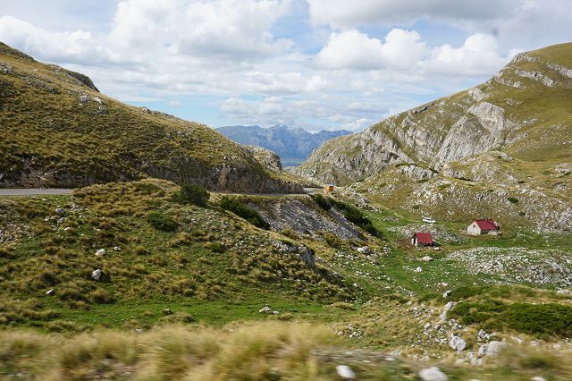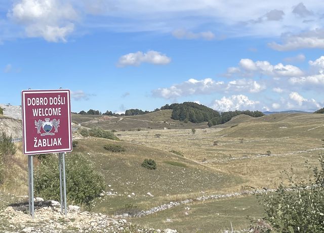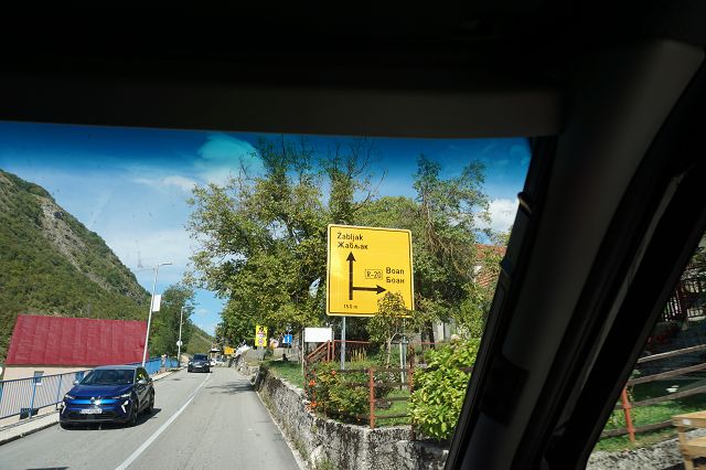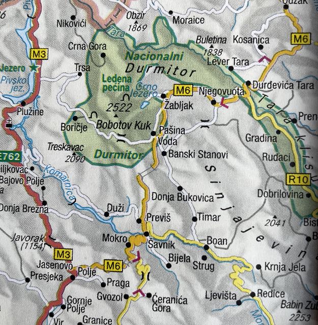 Während wir die ganze Zeit immer Richtung Westen gefahren sind, wendet sich die Straße jetzt nach Norden. Bei dem kleinen Ort Trsa müssen wir uns nun entscheiden: auf der P14 weiter nach Westen Richtung Piva-Canyon abbiegen und den Durmitor Nationalpark damit verlassen oder auf der Panorama-Straße Nr. 2 weiterfahren.