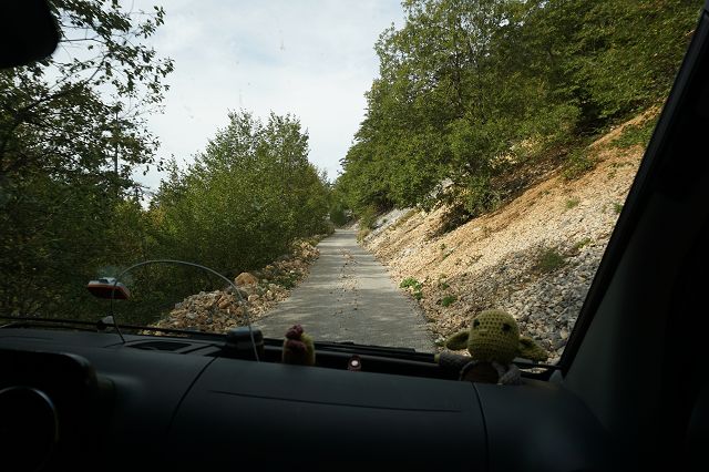 Die Straße ist schmal und bei Gegenverkehr müssen wir immer wieder in die Ausweichbuchten zum Platz machen.