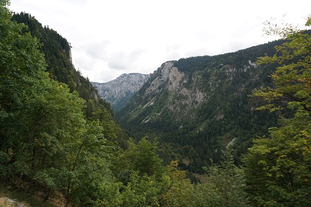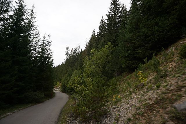 Die Landschaft hat sich mittlerweile sehr verändert. Während wir auf der Südseite des Gebirges durch die vegetationsarme Hochebene mit Weitblick gefahren sind, führt die Route jetzt fast ein wenig langweilig durch bewaldetes Gebiet.