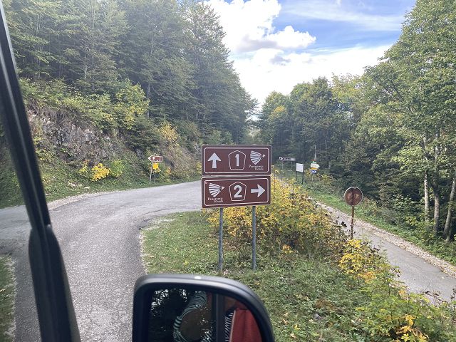 Hier startet offiziell auch die Panoramastraße Nr. 2. Wir hatten im Vorfeld gelesen, dass die Strecke für große Wohnmobile nicht zu empfehlen wäre und man sie mit größeren Fahrzeugen am besten im Uhrzeigersinn fahren sollte. Besonders der nördliche Teil der Rundstrecke soll ein wenig problematisch sein, weshalb immer wieder empfohlen wird, nur den südlichen Streckenabschnitt zu fahren und dann wieder umzukehren. Das hört sich ja recht abenteuerlich an und wir sind sehr gespannt, was uns erwartet.