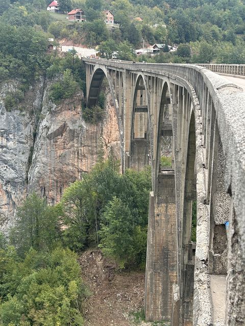 Von Žabljak aus fahren wir etwa eine halbe Stunden Richtung Osten. Zwar befinden wir uns jetzt nicht mehr auf der Panorama-Straße Nr. 2, aber der Besuch der Brücke, das Wahrzeichen der Tara-Schlucht, ist ein absolutes Muss!