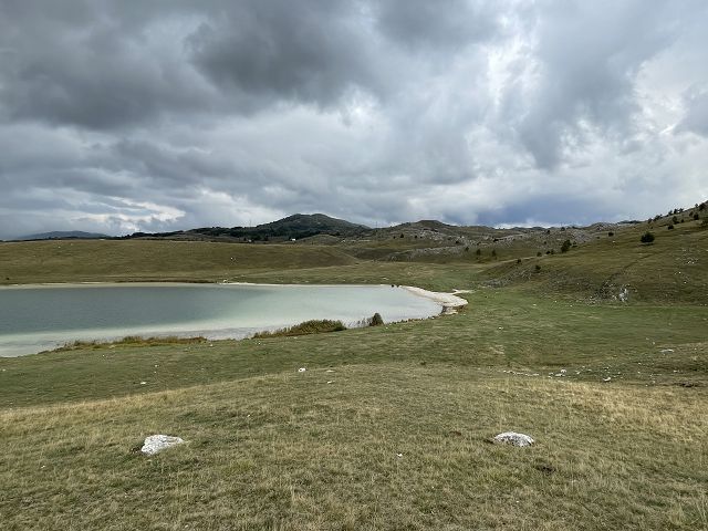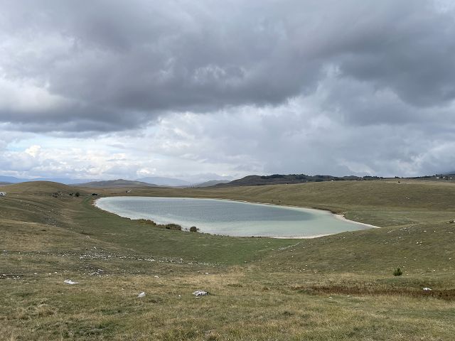 Idyllisch liegt er in der kargen Hochebene. Er ist einer der 18 Gletscherseen („Bergaugen“) des Durmitor-Gebiets und wir haben von hier aus noch einmal einen tollen Blick auf das Durmitor-Gebirge, das wir gestern umrundet haben.