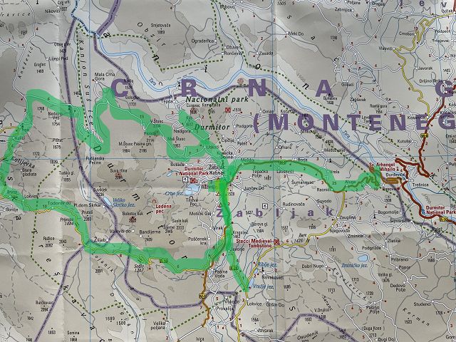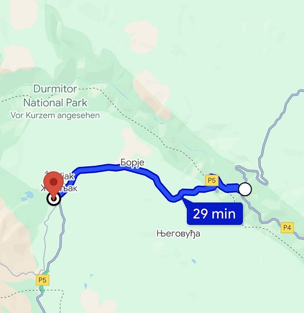 Inzwischen ist bereits später Nachmittag (wir haben für unsere Fahrt auf der Panoramstraße Nr. 2 bisher inklusive aller Pausen etwa 5 Stunden gebraucht) und es wird langsam Zeit, einen Übernachtungsplatz zu suchen. Deshalb fahren wir nach Žabljak.